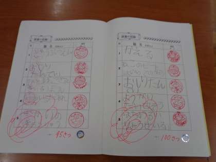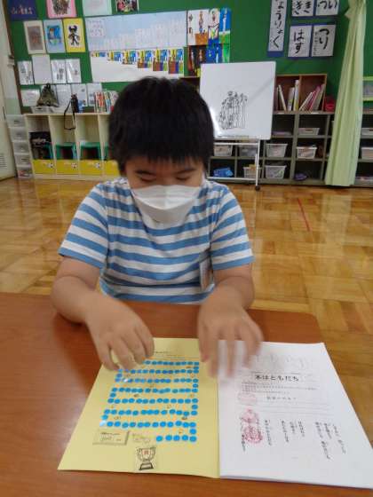 日常生活の学習では、毎日読書をしています。4月から読んだ本を読書ノートに記録してきました。そして、ついに、今日、読書マラソン100冊を達成することができました。毎日、本を読み、読書ノートに記録し続けられたことが、とても嬉しいです。「やったあ。」と喜んでいました。