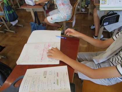 算数科「比とその利用」では、比が等しいかどうかを調べる学習をしました。「比の値が同じだと比が等しい」といえることが分かりました。