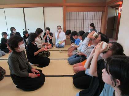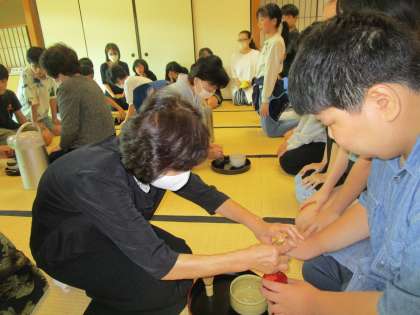 9月30日(金)に地域の女性会の方にご協力いただき、茶道体験教室を行いました。緑の館で和室をお借りし、お茶の先生をお呼びしての本格的な体験活動。お茶や茶菓子のおいしさやお茶を点てる楽しさなどを味わうことができました。