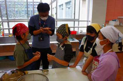 ガラス鍋を使って、ご飯を炊きました。普段は炊飯器で炊いている、という意見が多い中、「えっ、ご飯って鍋でも炊けるん!?」「いやいや、花背では鍋で炊いたやん。」「あ、そう言えばそうやった」というようなやり取りもありました。