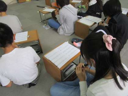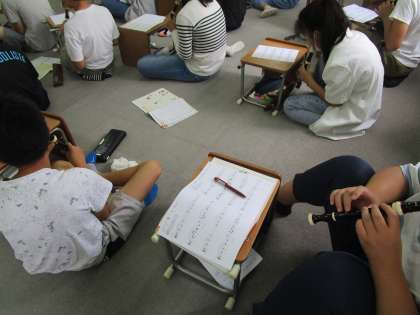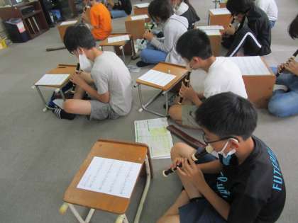 音楽科では「メヌエット」の楽曲に挑戦。「ソ」の♯の指使いに気をつけながら練習していきました。