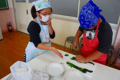【5年生】 家庭科 「食べて元気!ご飯とみそ汁」 〜だしを使っておひたし作り〜