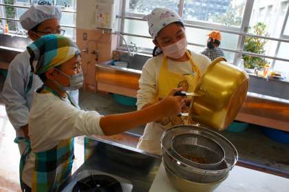 先日、「だしの授業」を通して、だしの力について学習しました。だしそのもののおいしさを味わうということ以外にも、だしには他の食材の旨味を引き出すという力もあります。