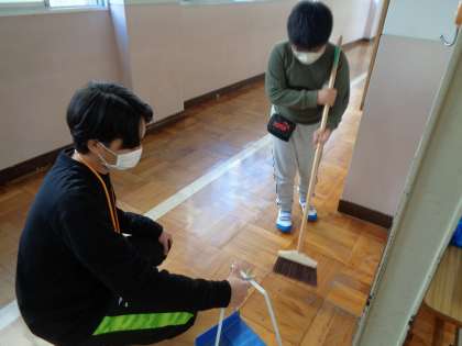 今日は、教室に来てくれた先生とも一緒に、学習や活動を一緒にしました。そうじをするとき、いつもはちりとり役をしていますが、今日は、自分から進んでほうき役をしていました。