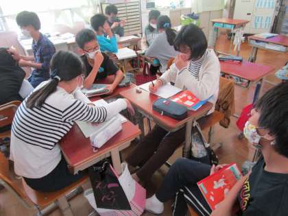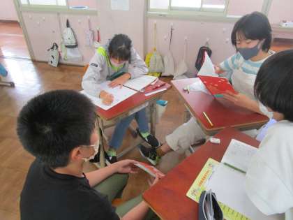 国語科「みんなで楽しく過ごすために」では、1年生とどんな遊びをするかをグループで話し合いました。まずはグループで意見を出し合い、その後、まとめていく話し合いをして、結論を導き出しました。