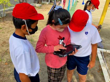 自分の課題がどこにあるのか、友だちにタブレット端末で動画を撮ってもらい、振り返っている姿も見られます。