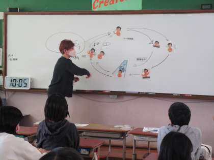 学校薬剤師の松井先生をお迎えして、薬物乱用防止教室を行いました。昨年に引き続きの開催となったこの教室。今回は大麻や覚せい剤といった薬物について、どんな恐ろしさがあるかやどう断ればよいかなどを学びました。