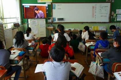 教科書に載っている「じゅげむ」「まんじゅうこわい」「はつてんじん」を映像で観て、おもしろさを味わいました。