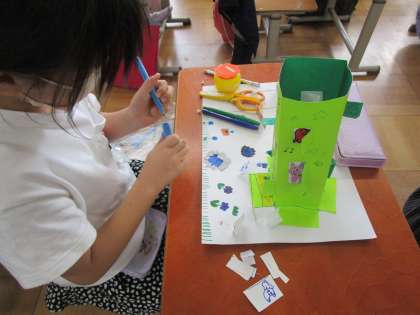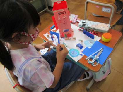 図画工作科の時間に「まどからこんにちは」に取り組んでいます。