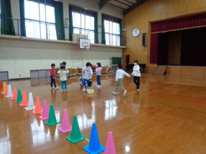 外遊びを企画していたグループは,お天気の関係で体育館ですることになりましたが,変更にもうまく対応できました。
