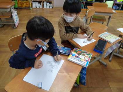 おに遊びやお絵描き教室,いす取りゲームなど1年生が希望によりグループに来てくれてとてもうれしそうでした。