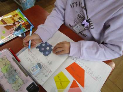 算数の勉強で直角を習いました。折り紙を折ってさらに半分に折ると直角ができました。身の回りには直角がたくさんあることの気づきました。三角定規でも直角を確かめました。