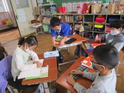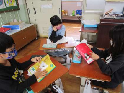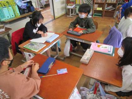 国語科の単元「そうだんにのってください」では、自分の悩んでいることをみんなに相談して解決策を考えてもらい、話し合いをします。「すぐお兄ちゃんとけんかしてしまいます。」「夜お布団に入ってもなかなかねむれません。」などあるあるの相談事に「分かるう。」と言いながら楽しい解決策を出し合い相談しました。