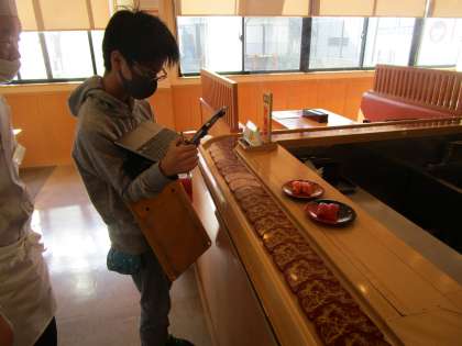 総合的な学習の時間で町の魅力を取材しに行った子どもたち。気になるものがあれば、タブレットを使って撮影して記録していきました。
