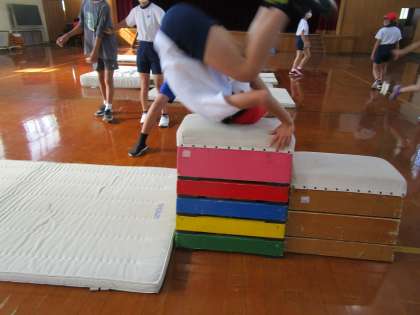 体育科では「とび箱運動」がスタート。いろいろな練習の場を用意することで、自分に合った場所で練習に励むことができました。