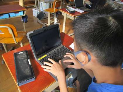 国語科「知らせよう!広めよう!私たちの地域の魅力」では、梅小路の魅力のスポットをパンフレットにまとめていきました。分かりやすいパンフレットにするために、撮影した写真を入れていく子どもたち。完成が楽しみです。