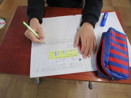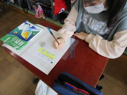 算数科「比例と反比例」では、2つの数量の関係が比例かどうかを調べる学習をしました。まずは2つの終了関係を表や式、グラフに表し、その後、比例の特徴が表れているかどうかで判断していきました。