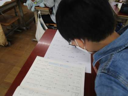 漢字50問テストにチャレンジしました。テストの前にはしっかり勉強して取り組みました。