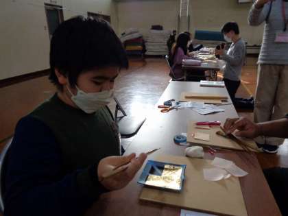 うぐいす 交流学習 総合「金箔押し体験」