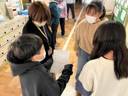 6年生と打ち合わせた内容を、フレンドリーの担当の先生に相談しに行きました。無事、報告が負えられてホッとした様子も。