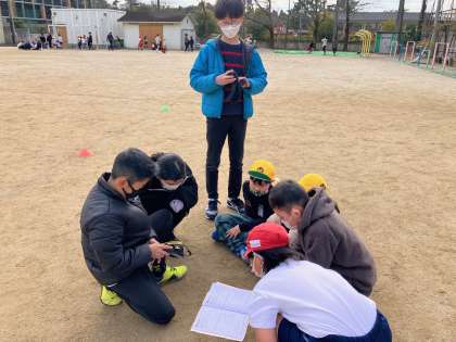 「言うは易く行うは難し」。企画するのと実際に行うのとでは、やはり違います。教室に帰って来て、「あ〜難しかった!」「グループの人に説明して分かってもらうのが大変やった。」「準備に手間取って、遊びを始めるのが遅くなっちゃった……次はもっとこうしたいな。」と、様々な課題が見えてきたようです。