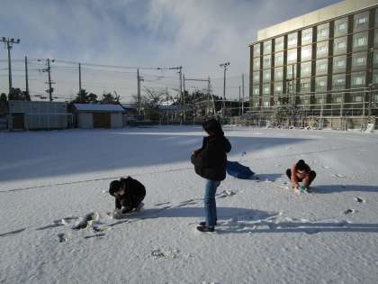 1月25日(水)は昨夜から降り続いた雪が積もり、運動場も白銀世界に。無邪気に遊ぶ子どもたちの姿が見られました。また、玄関前にはかわいらしい雪だるまが飾られていましたよ。