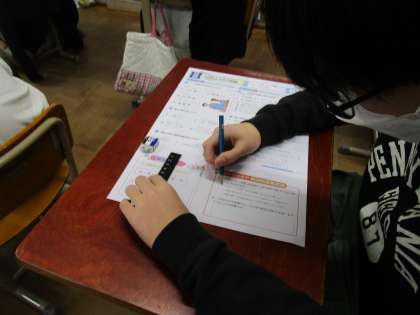 国語科「大切にしたい言葉」のテストに取り組みました。プレテストに取り組んだ成果を発揮することができました。