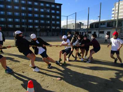 体育科で取り組んでいた「棒引き」も最終回を迎えました。どのようにすれば棒をとれるのか、動き方や引き方などを工夫することで、棒を取れるようになってきました。