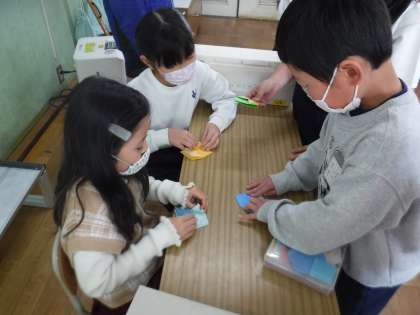 2月2週目のイベントとして、遊び係の子どもたちがほかの子どもたちに、折り紙の折り方をレクチャーしてくれました。