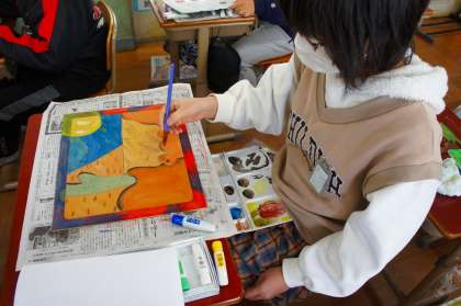 徐々にパズルが出来てきました。絵具で色付けしたり、ニスを塗ってツヤを出したり。造形展まであと少し!