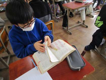 国語科「覚えておきたい言葉」では、各教科で登場する言葉について辞書で調べ、正しく理解する学習に取り組みました。その後、それらの言葉を使って文を作り、定着をはかりました。