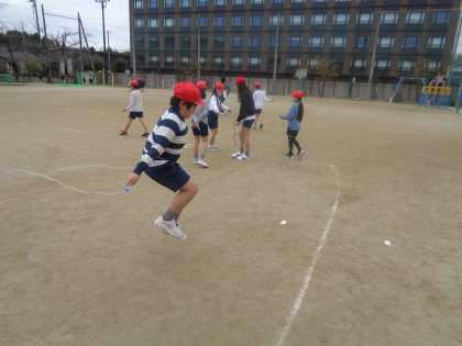 大なわでは,みんなで8の字をしました。うぐいすの児童が跳ぶときには,へび跳びにしてもらいました。児童ができる方法で参加できるように考えてくれる友達が素敵だなと感じました。