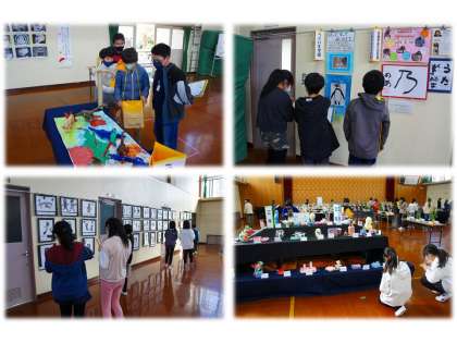 他の学年の友だちの作品だけではなく、下京中学校をはじめ、他校の友だちの作品も掲示しています。「すごいなぁ!」「綺麗やな〜」「こんなん、やってみたい!」と、良い刺激をたくさん受けていました。これからの学習に生かしてほしいと思います。