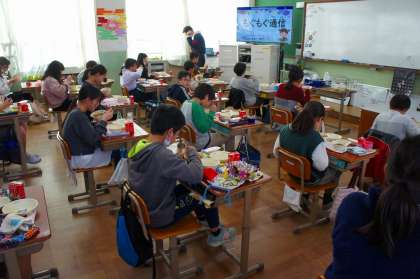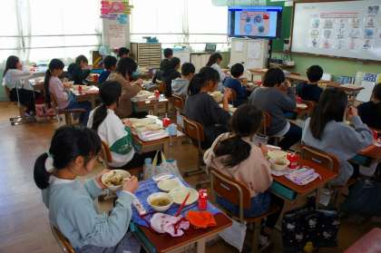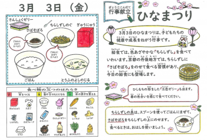 【5年生】 3月3日は桃の節句 〜給食時間の様子〜