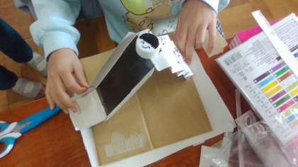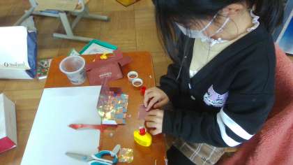 集めた材料を工夫して「小さな友だち」の家を作りました。