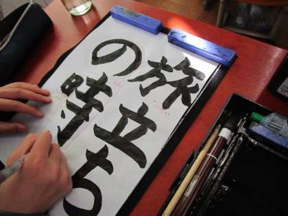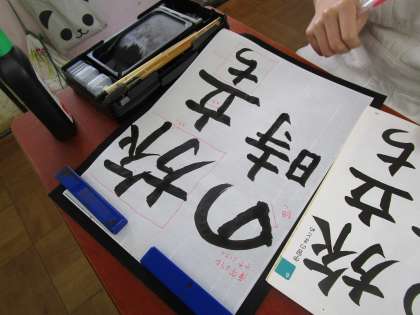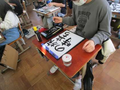 書写では学習のまとめとして「旅立ちの時」を書きました。5文字なので配列が難しかったですが、今までの学習の成果を発揮しようと、自分でがんばるめあてを決めて取り組んでいきました。