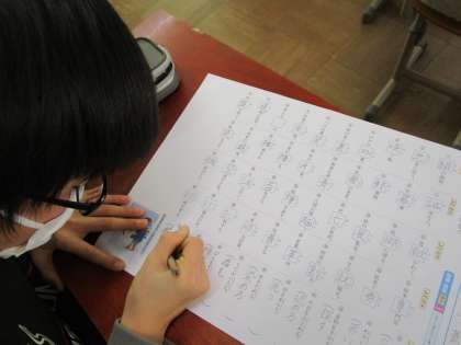 1年間で習った漢字の総まとめのテストに取り組みました。テストに向けて、猛勉強していた成果が出た子もいました。