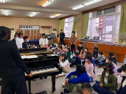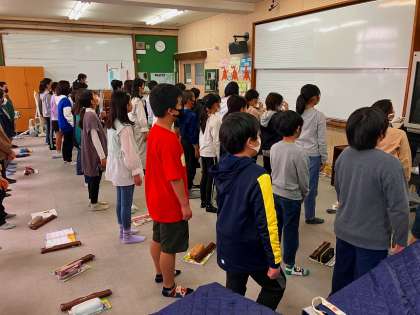 いよいよ明日にせまった「6年生を送る会」。今日が最後の練習です。音楽科の学習をみてくださっている竹田先生と一緒に練習をしました。自分たちの言葉や歌について振り返り、よいところはどこか、どうしたらもっとよくできるのか、という視点で考えながら練習しました。