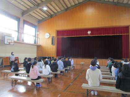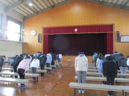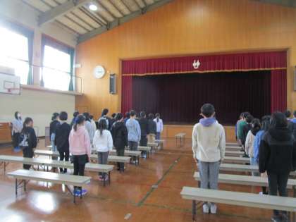 3月23日(木)の卒業式に向けて練習がスタート。起立や着席のタイミング、礼の角度や長さなども統一できるように、何度も練習しました。