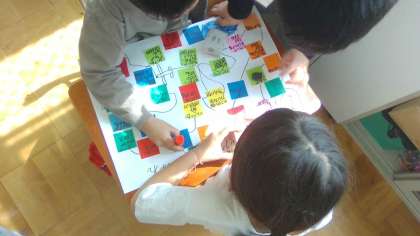 すごろくでは、今までの出来事を友だちと共有して懐かしむ姿がありました。