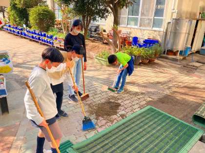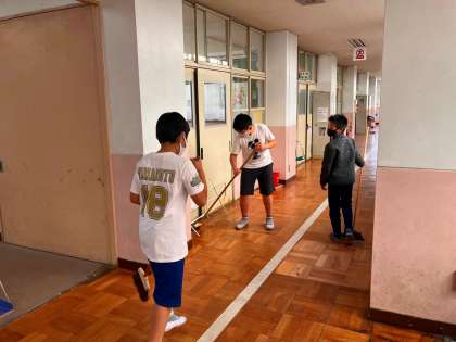 綺麗にしたのは、体育館だけではありません。校舎の廊下、階段、外の通路など、明日のために心をこめて、掃除や整理整頓をしました。