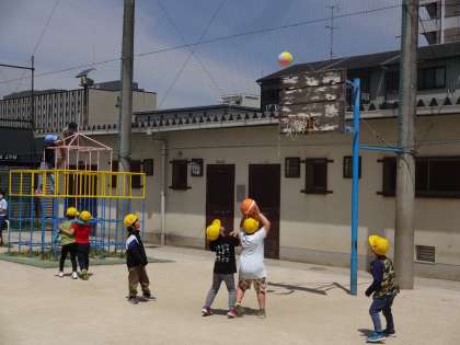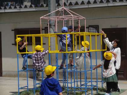 運動場に出て外遊びを楽しんでいます。体育の学習でしたうんていやジャングルジム、鉄棒であそぶ子、何人かでおにごっこを楽しむ子、ボールあそびをする子などいろんなあそびを楽しんでいました。休み時間の終わりを知らせる音楽が鳴ると、お兄さんお姉さんがあそびをやめてさっと教室へ帰っていくのをまねっこして、戻ることができていました。学習も遊びも、いっぱい楽しんでいこうね。