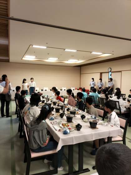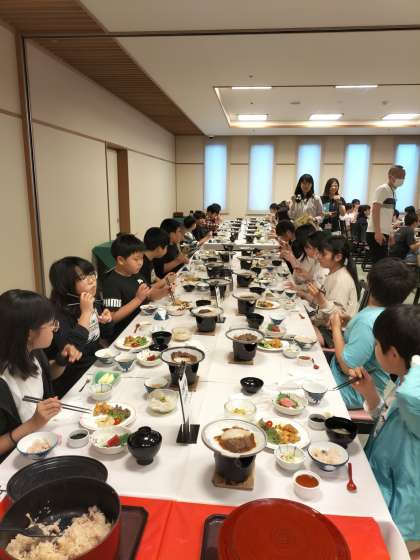 夕食タイムです。みんなでおいしくいただきました。たこ飯のおかわりをたくさんするくらいみんなとても元気に過ごしています。