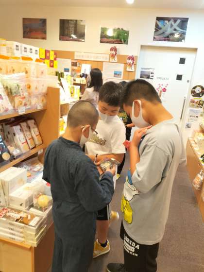 お風呂の前後に売店に行き、おみやげを選びました。真剣な表情で悩みながらも楽しくお買い物できたようです。