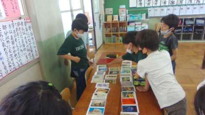 日本や世界の有名な作品をアートカードを見比べて、よいところや気に入ったところを見つけて交流しました。