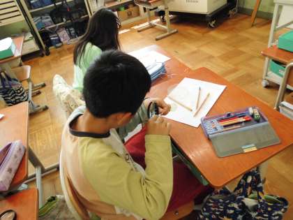 理科の学習で虫めがねの使い方を学習しました。正しい使い方で、種の観察をしました。ヒマワリ、ホウセンカ、オクラ、ダイズそれぞれの特徴を見つけながら観察することができました。