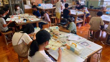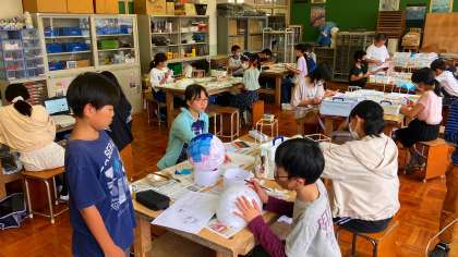 引き続き、制作を進めています。実際に明かりを灯して、光の透け具合を確認している人もいました。完成が楽しみです!