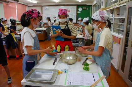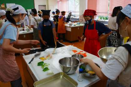班ごとに計画を立てて、いよいよ調理実習です。見通しをもって、テキパキと活動することができました!班のメンバーみんなでよく協力して、作ることができましたね。