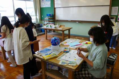 完成が近づいてきました。土台を工夫したり、飾りをつけ足したり。試しに明かりを灯しながら、何度も確認する子もいました。