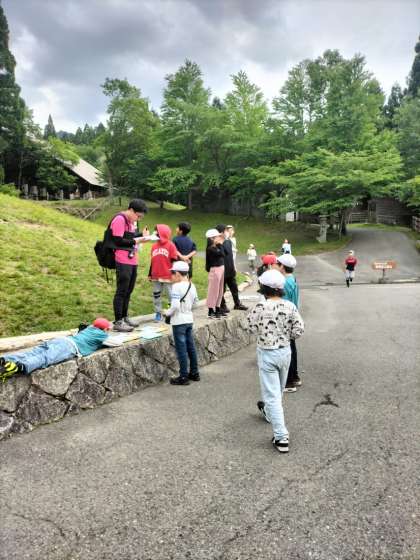 続いてスコアオリエンテーリングです。地図をたよりにポイントを見つけてそこにある問題を解いていきます。時間内にうまくまわってゴールにたどり着けるよう頑張っています。